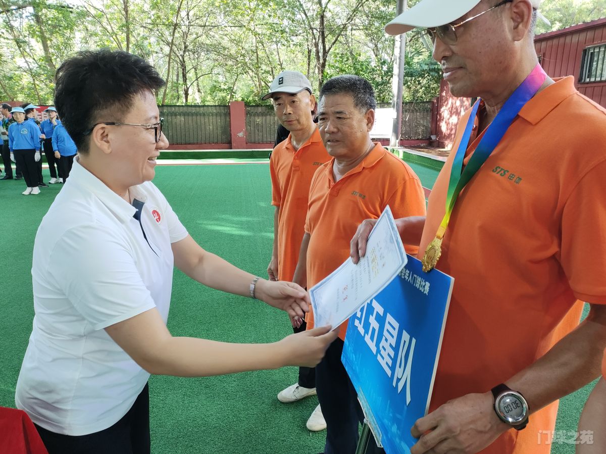 经过激烈的角逐,和平区红五星队夺得冠军,河北区益康九队和滨海新区大港油田队分获亚军和季军。最后,在欢快的乐曲声中获得前三名的优胜队,在引导员带领下依次上台,天津市门协贾跃刚秘书长、周滨会长和天津市老年人体育协会张丽颖秘书长,分别队冠、亚军和季军颁发了奖牌、荣誉证书并合影纪念。