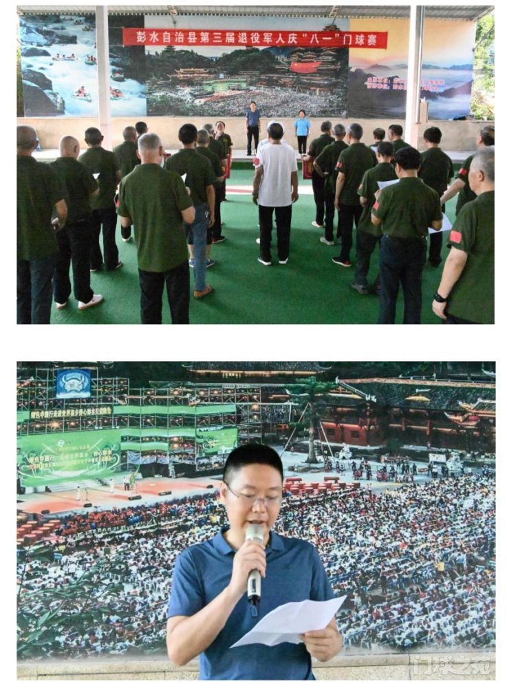建军节将至,心情尤为激动,并起意办一场迎建军节到来的门球运动赛事,一经发出倡议,得到了具有门球运动技能退役军人们的热烈响应。其二,县退役军人事务局收到退役军人的相关报告后,及时作了批复,并给予了一定资金支持。县退役军人事务局副局长兼退役军人服务中心主任的曾小刚同志,亲临赛场大会讲话鼓励,并宣布运动会开幕!其三,此次赛事吸引了不少观众,年逾八十五岁的门球健身者宋 XX 到场了。与彭水比邻的武隆区门球爱好者李 XX 专程前来观摩助兴。