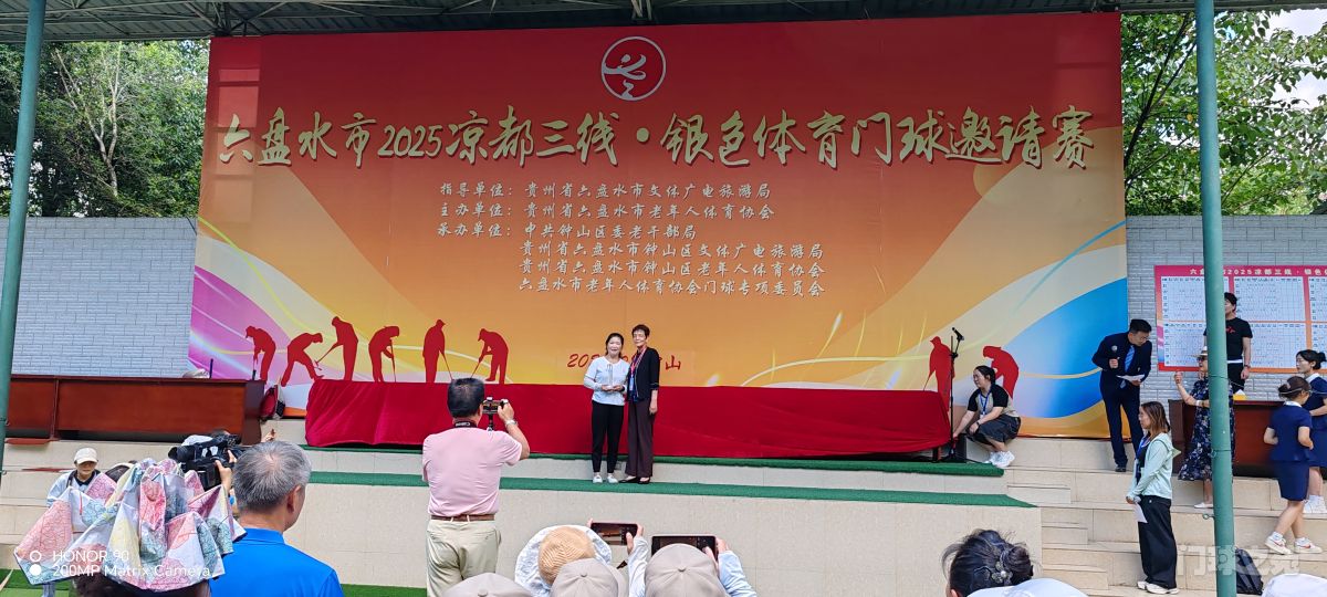 2025年8月18日上午,在六盘水市钟山区麒麟公园门球场,六盘水市老年人体育协会主席谢朝碧女士为重庆江津队颁授了冠军奖杯,至此六盘水市2025凉都三线·银色体育门球邀请赛圆满落幕。