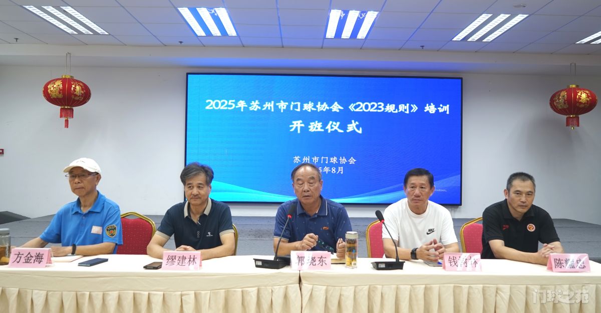 为了进一步加强我市门球裁判员、教练员队伍建设, 提升我市门球裁判员、教练员对《2023门球规则》的精通、理解和规范执行力,8月25日和26日,由苏州市门协主办,张家港市门协承办的2025年苏州市门协《2023 门球规则》培训班在张家港市门球馆开班。来自苏州市范围内八个区、县市的几十名三级以上门球裁判员参加了培训。