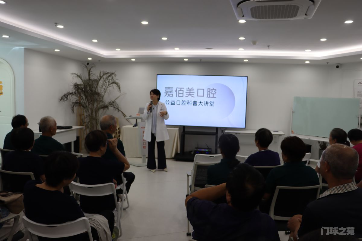 上午8点半,参加这次邀请赛的全体人员在嘉佰美口腔有限公司创始人李佳的带领下,参观了这所医院后。随后,大家在二楼的会议室里,聆听了嘉佰美口腔有限公司董事长曹燕主讲的“公益口腔科普大讲堂”中的内容。并一起观看了医院里医师进行口腔种植牙手术的直播。从而让全体老年球员们明白了为促进自己身体健康,如何进行口腔养护方面的许多科学知识。