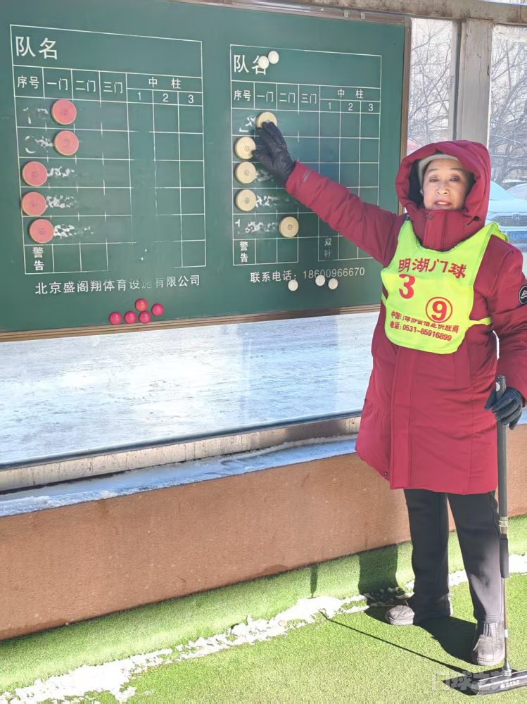 这是军休门球人孙梅比赛间隙主动翻分