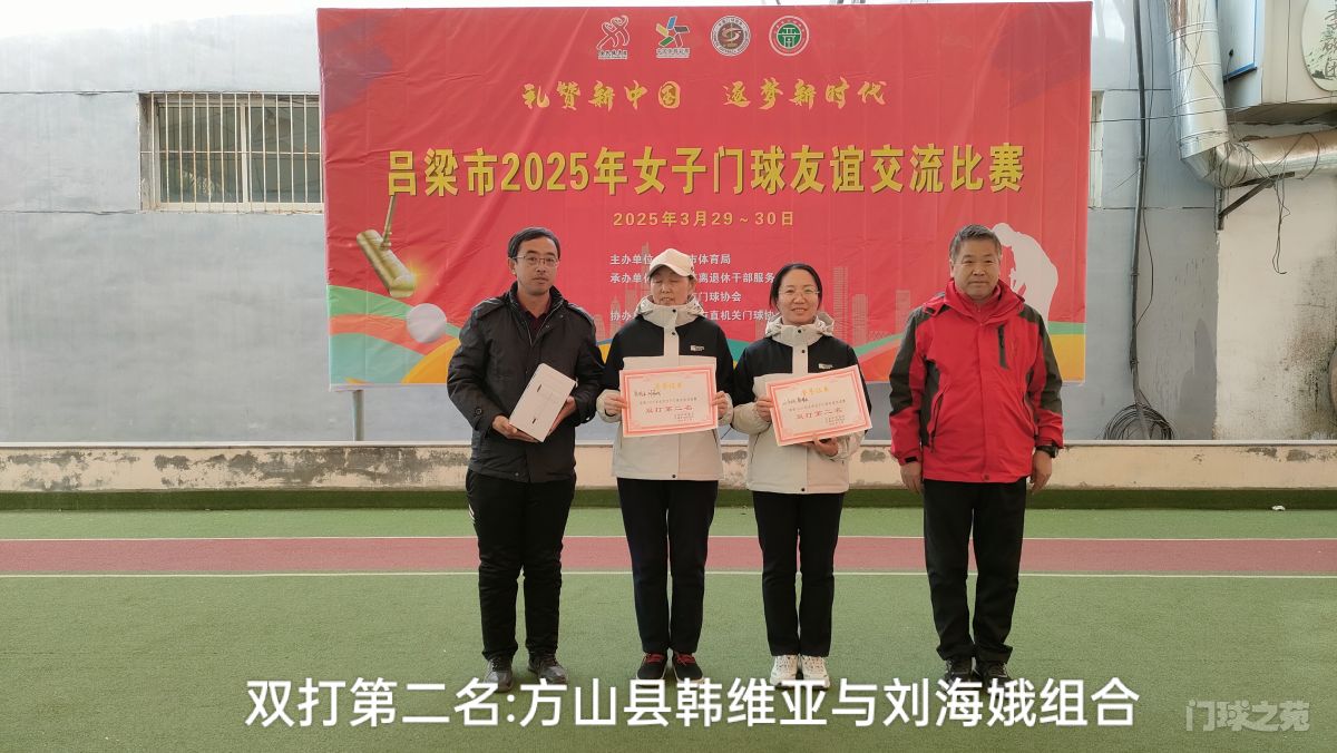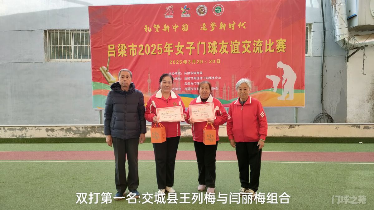 经过两天的激烈角逐,双打获得第一名交城县王列梅与闫丽梅组合、第二名方山县韩维亚与刘海娥组合、第三名文水县李俊与韩尔梅组合和汾阳市杜云爱与曹继红组合。五人团体赛,第一名交城一队、第二名文水队、第三名离石一队和交城二队。此外,汾阳二队、汾酒队、孝义队、市直二队荣获体育道德风尚奖。赛事期间,山西省门协副主席、吕梁市门协主席李寿宣布聘任汾阳门协主席张吉成为吕梁市门球协会副主席,为门协发展注入新活力。
