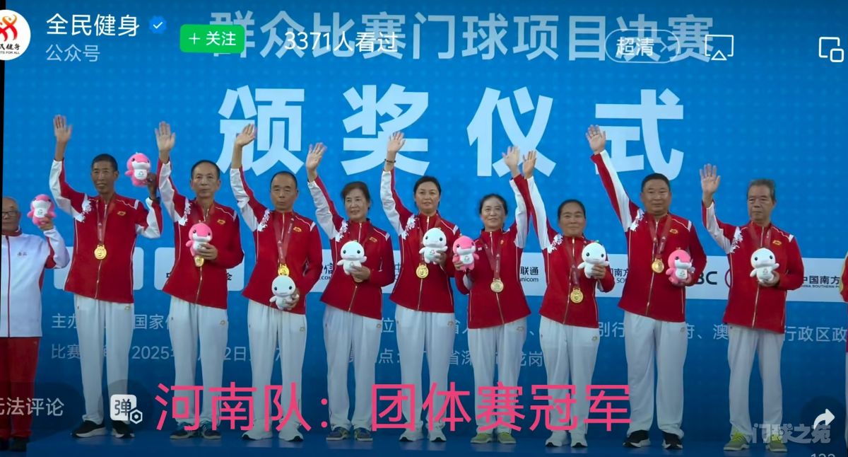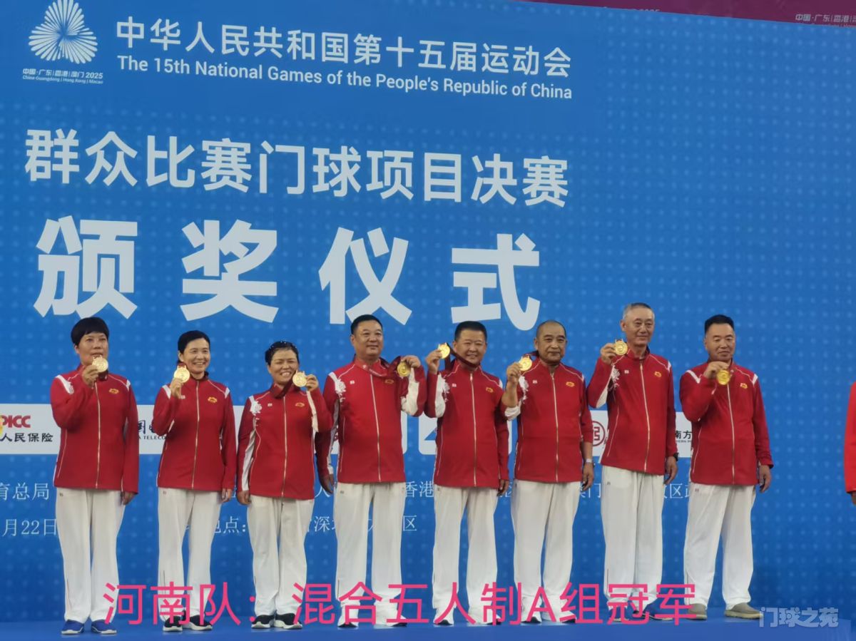 说明:2025年8月22~27日,第十五届全国运动会群众比赛门球项目决赛,在广东省深圳市大运中心体育场隆重举行。河南队在全部六大比赛项目中,参加三大项决赛。并以“混合五人制A组”和“团体赛”两块金牌荣居奖牌榜榜首;另一项男双晋入八强。其中,焦作籍选手李军参加团体赛女单项目;马占胜、张翠萍参加团体赛混双项目;焦作市门协会长孙本强(国家级)、市门协秘书长程旭东(国际级)以及胡福军(国家级)三位同志还加入了裁判员队伍。为表心意,赋诗祝贺。